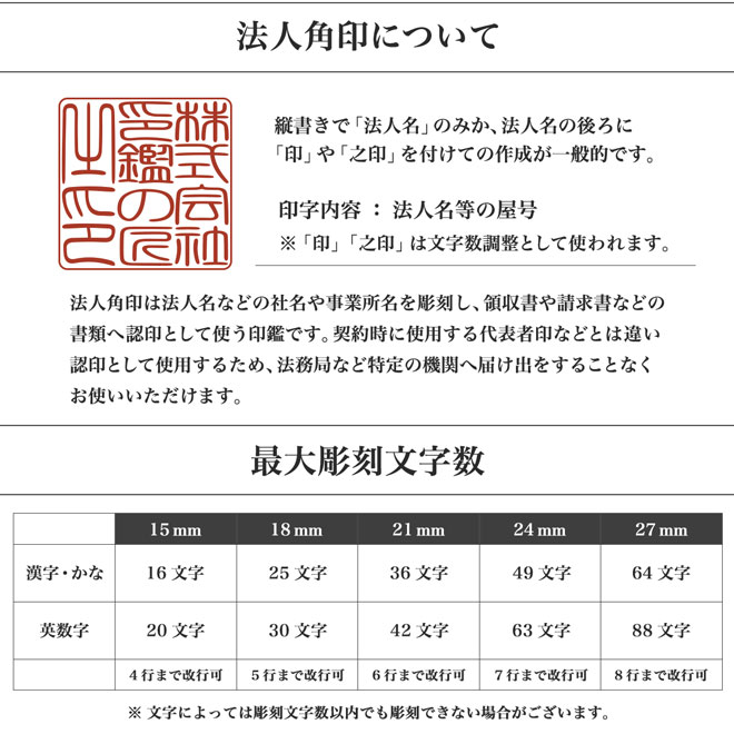 トップページ> 法人角印・屋久杉・角天丸・21mm 法人印鑑/角印 屋久杉/角天丸/21mm/ケース別売 商品名称 法人印鑑/角印 屋久杉/角天丸/21mm/ケース別売 販売価格 ¥49,800(税込) 納期について 営業日の15時までのご注文は当日出荷いたします。 商品ID inza10015102 対応サービス 1個 2個 3個 4個 5個 6個 7個 8個 9個 10個 11個 12個 13個 14個 15個 16個 17個 18個 19個 20個 インフォメーション ***